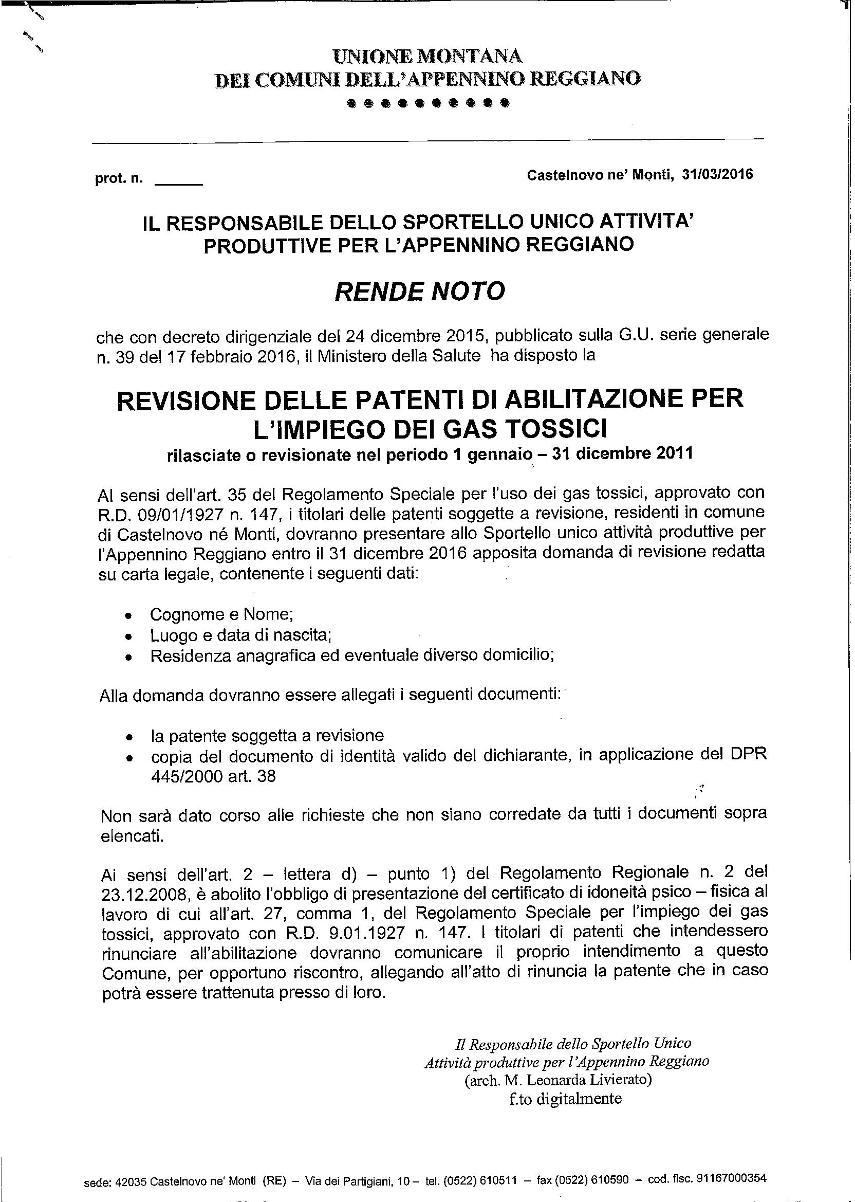 31Mar 2016 Avviso: Revisione delle patenti di abilitazione per l’impiego di gas tossici Categories: News istituzionali
