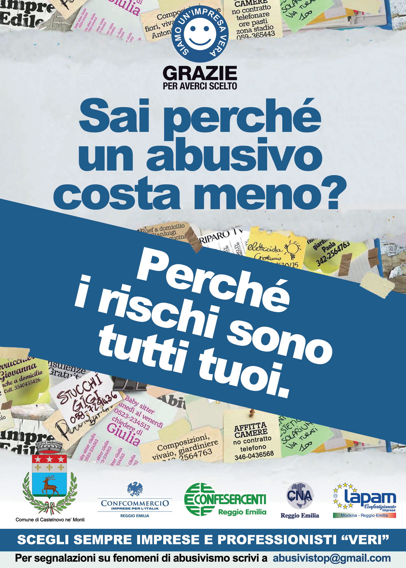 Romeo Ferrari, gommista e Presidente CNA di Castelnovo ha spiegato: “Abbiamo indetto questa campagna perché anche in montagna l’abusivismo è radicato: vogliamo combattere il lavoro nero e far sì che chi ha capacità, licenze, autorizzazioni, partecipa a corsi di aggiornamento, sia protetto in misura maggiore. Fare del “nero” può forse evitare difficoltà a piccole aziende, ma non è modo giusto di operare. Chiediamo piuttosto insieme una riduzione delle tasse per far sopravvivere le attività soprattutto in montagna”. Vittorio Ruffini, Presidente di Confesercenti Montagna, ha concluso: “Io faccio da sempre l’orefice e orologiaio, oggi sappiamo che ci sono moltissimi falsi venduti in canali illeciti, e spesso si tratta anche di merce rubata e riciclata, venduta a prezzi fuori da ogni logica, che creano danno due volte e alimentano l’illegalità. In montagna difendere l’esistenza delle attività commerciali ha non solo un peso economico ma anche sociale, ogni attività che chiude incrina la tenuta del territorio”.