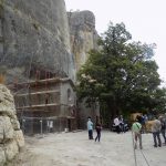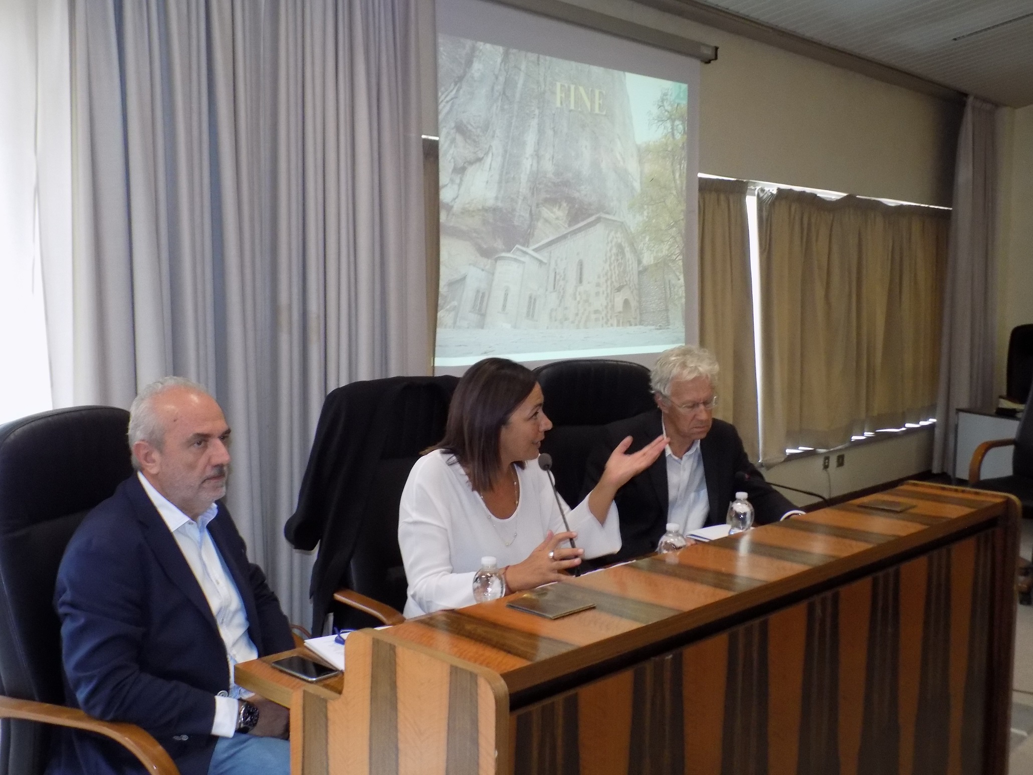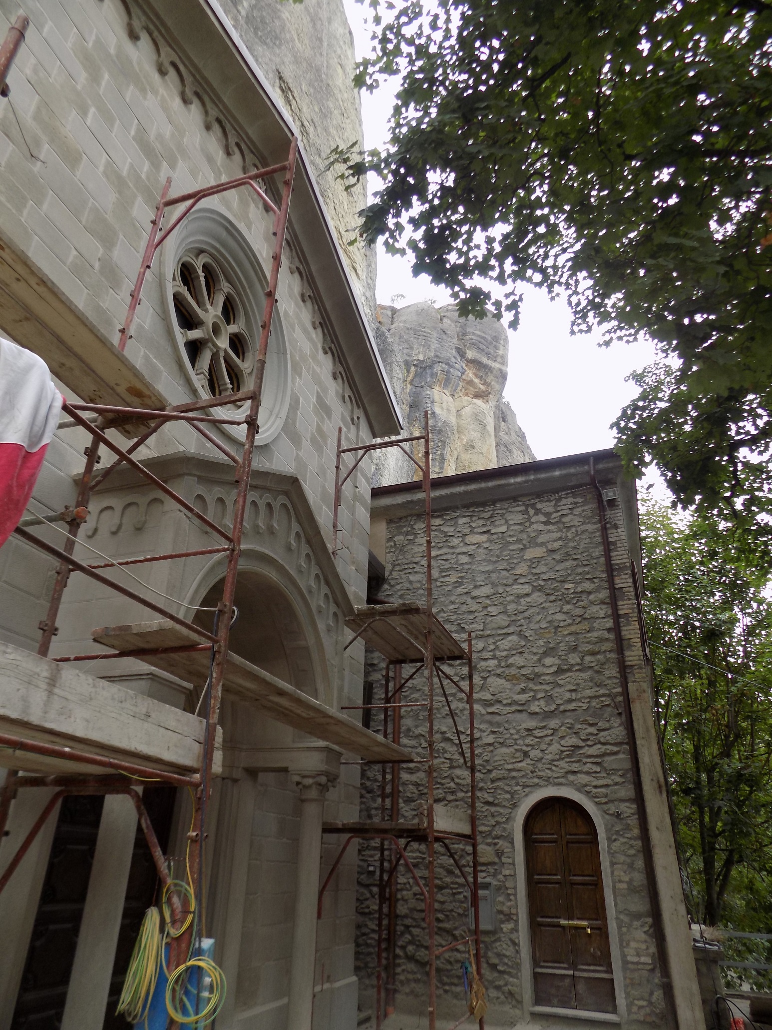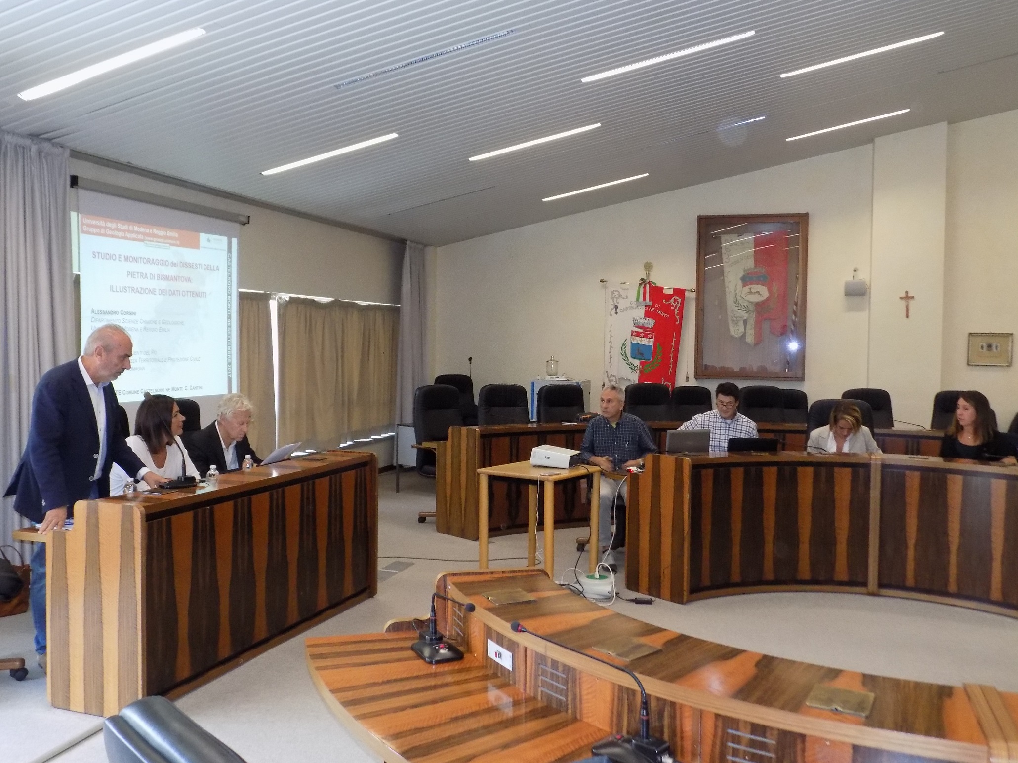 Questi ultimi hanno illustrato due relazioni sugli studi e i seguenti interventi eseguiti in questi anni, a partire da un monitoraggio sulla situazione della Pietra, con rilevatori di distanza nelle spaccature in parete, e webcam che analizzano in tempo reale la situazione delle pareti, da cui si è potuto rilevare il quadro complessivo, con i punti in cui le rocce presentavano possibili rischi. Su queste si è intervenuto con chiodature, poi mascherate in modo che fossero invisibili, oppure con disgaggi e abbattimenti di alcune lame particolarmente instabili. Sono state posizionate anche reti paramassi alla base di alcuni punti, e una “vela” di protezione dell’eremo che sarà poi rimossa una volta conclusi tutti gli interventi nell’area.