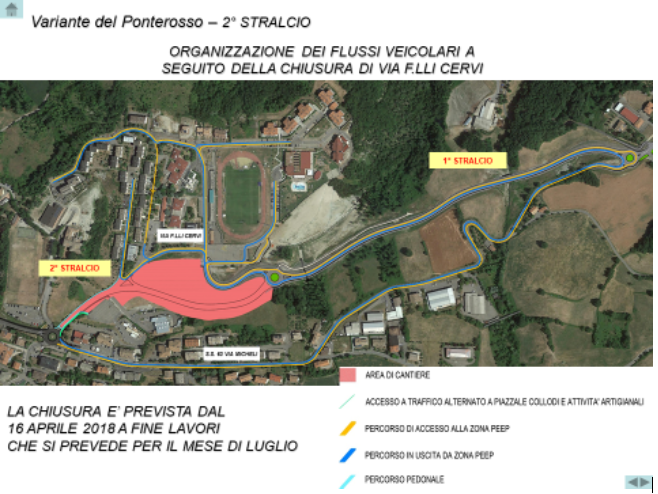 Il tracciato della Variante del Ponterosso di 1.250 metri complessivi, è stato suddiviso in due lotti, rispettivamente di 658 m, già completato, e di 495 m, in corso di realizzazione.