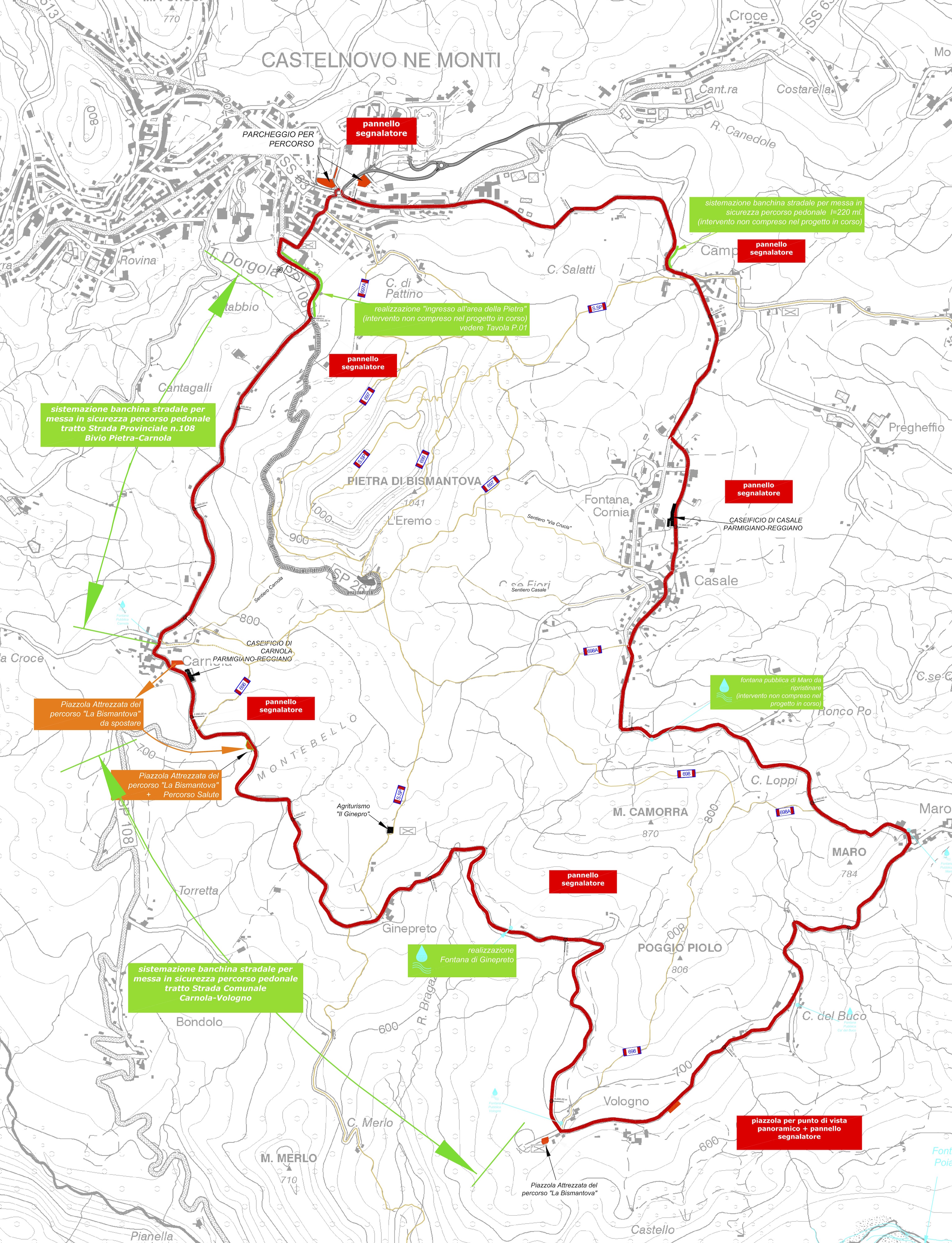 Spiega l’Assessore al Turismo di Castelnovo, Chiara Borghi: “Per noi si tratta di un progetto estremamente importante: il “giro della Pietra” è un percorso dall’alto valore turistico, ambientale e culturale, che connette anche Castelnovo alla via Matildica del Volto Santo, collegando il capoluogo, attraverso la viabilità pubblica esistente, alle località di Carnola, Ginepreto, Vologno, Maro, Casale e Campolungo. Un tracciato che ora vedrà opere di miglioramento della percorribilità ciclo-pedonale. Da tempo l’anello della Pietra è altamente frequentato da camminatori, corridori, ciclisti, persone che praticano il nordic walking, gli skiroll, e altre discipline. Ma è oggetto di una fruizione non solo sportiva: c’è chi lo frequenta per la presenza di sentieri verso il bosco, verso la Pietra, e in estate sono molti che vivono nelle seconde case dei borghi rurali collegati dal tracciato. C’è inoltre la casa vacanze vicina alla Chiesa Romanica di Vologno a rappresentare un altro elemento di attrazione turistica. Si tratta insomma di un itinerario straordinario, che presentava la necessità di essere migliorato per attivare un processo di ulteriore sviluppo dei territori interessati”. “L’intervento – aggiunge il Sindaco Enrico Bini – ha anche l’obiettivo di migliorare l’accessibilità a questi luoghi che, insieme alla Pietra, presentano un altissimo valore culturale e ambientale. Abbiamo puntato anche ad aumentare la connessione tra Bismantova e il centro urbano di Castelnovo: il punto di ritrovo dove lasciare le macchine e iniziare il percorso a piedi sarà Piazzale Vittime di Roncroffio, ed è prevista la realizzazione a carico del Comune di un nuovo marciapiede lungo via Bismantova, dall’incrocio con via Micheli, fino a dopo Carnola, che sarà importante anche per le persone dirette al cimitero e alla Rsa”.