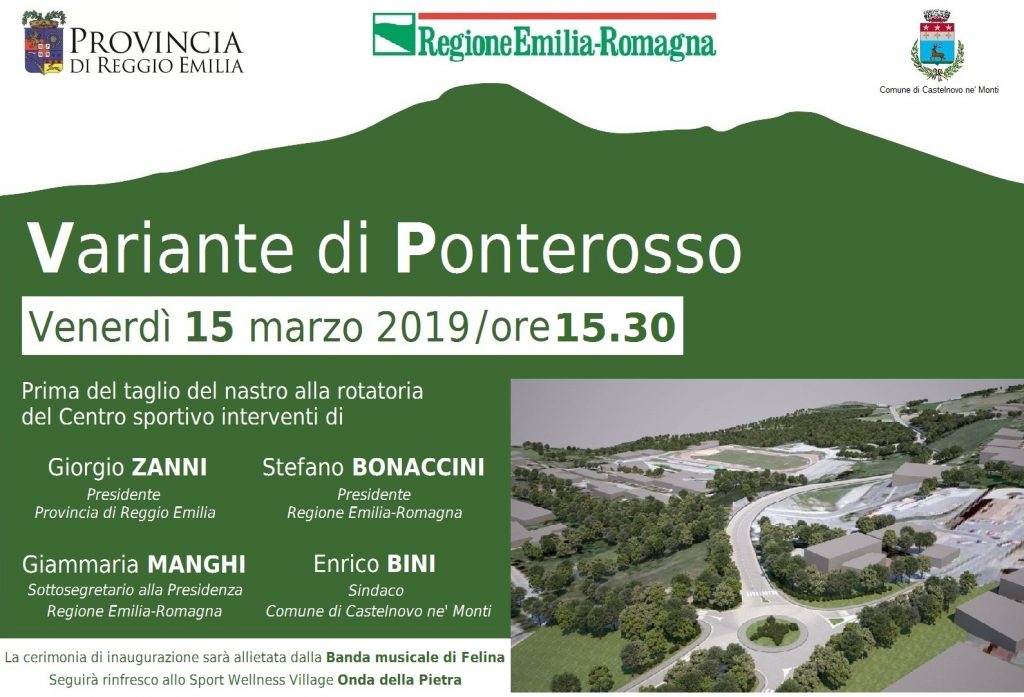 Avverrà venerdì, 15 marzo, l’inaugurazione della Variante di Ponte Rosso, dopo un cantiere durato assai più a lungo delle previsioni iniziali. L’inaugurazione è fissata per le 15.30: prima del taglio del nastro, che sarà alla rotatoria vicina al Centro Coni, ci saranno al centro polifunzionale Onda della Pietra gli interventi di Stefano Bonaccini e Giammaria Manghi, presidente e sottosegretario della Regione Emilia-Romagna, del Presidente della Provincia Giorgio Zanni, e del sindaco Enrico Bini.