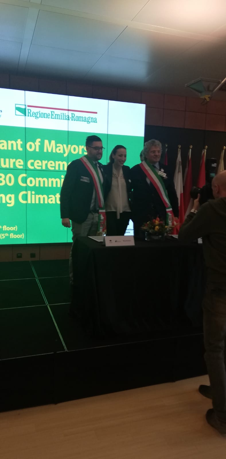 La delegazione ha firmato gli impegni fino al 2030, nell’ambito del Patto dei Sindaci, con l’obiettivo di ridurre i gas serra, e fare ciascuno la propria parte per contribuire a contrastare i cambiamenti climatici.