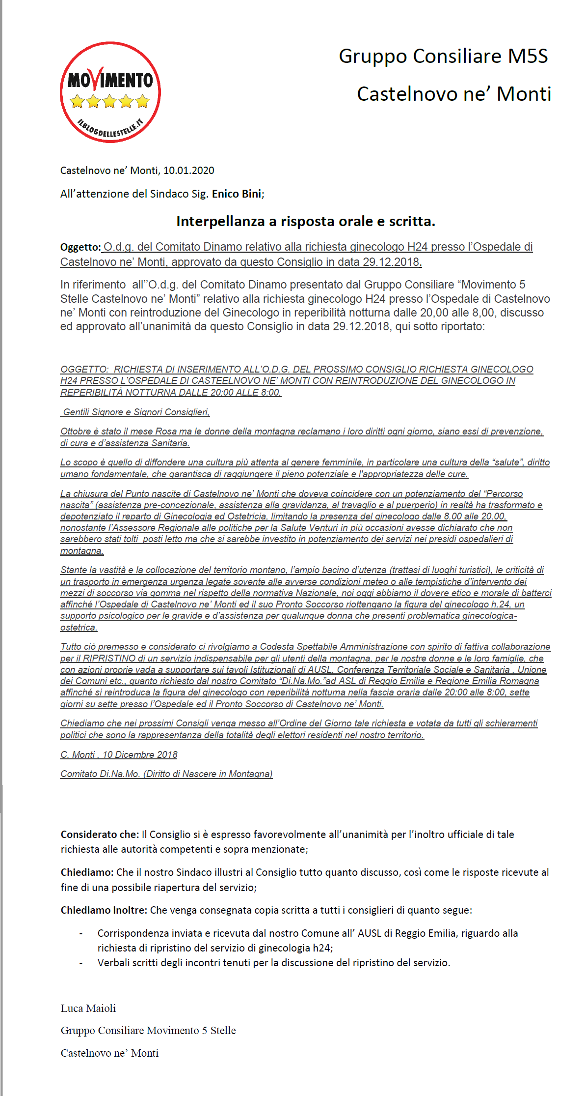 Nei giorni scorsi il comitato Di.Na.Mo. ha chiesto alle forze di opposizione e di maggioranza se vi siano aggiornamenti sull’impegno preso dal nostro Comune lo scorso anno, riguardo alla richiesta di reintroduzione del servizio di ginecologia h24 nel nostro ospedale.