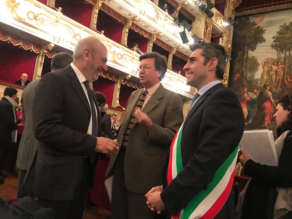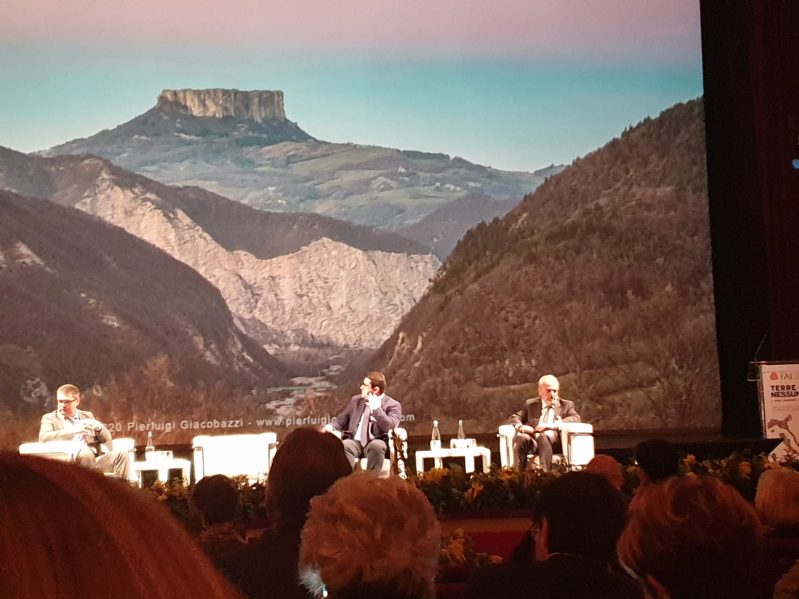 L’evento al Teatro Regio, ha visto la partecipazione tra gli altri del Sindaco Federico Pizzarotti; di Anna Laura Orrico Sottosegretatrio del Ministero per i Beni e le attività culturali e il Turismo; del Presidente FAI Andrea Carandini; dello scrittore Paolo Rumiz; dei Sindaci e Amministratori Fabio Milesi (Roncobello, BG), Gianluici Serra (Ulassai, NU), Fabio Sebastiano Venezia (Troina, EN), Camillo d’Angelo (Valle Castellana, TE).