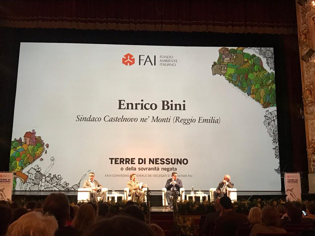 Il Comune di Castelnovo Monti, nella persona del Sindaco Enrico Bini, ha partecipato sabato, 15 febbraio, al 25° Convegno Nazionale del FAI (Fondo Ambiente Italia), che si è svolto al Teatro Regio di Parma. Il tema al centro del convegno quest’anno era “Terre di Nessuno”, e così viene spiegata la scelta dal FAI (Fondazione senza scopo di lucro nata nel 1975, con il fine di tutelare e valorizzare il patrimonio storico, artistico e paesaggistico italiano): “C’è una parte dell’Italia che è “terra di nessuno”. Il 60% del territorio nazionale, dalle Alpi agli Appennini, isole comprese, è come una seconda Italia: sconosciuta, abbandonata, isolata”.