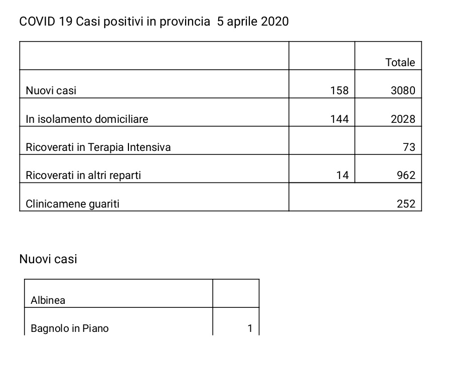 I nuovi casi registrati a Castelnovo nelle ultime 24 ore sono 3, portando il totale sul territorio comunale a 94.
