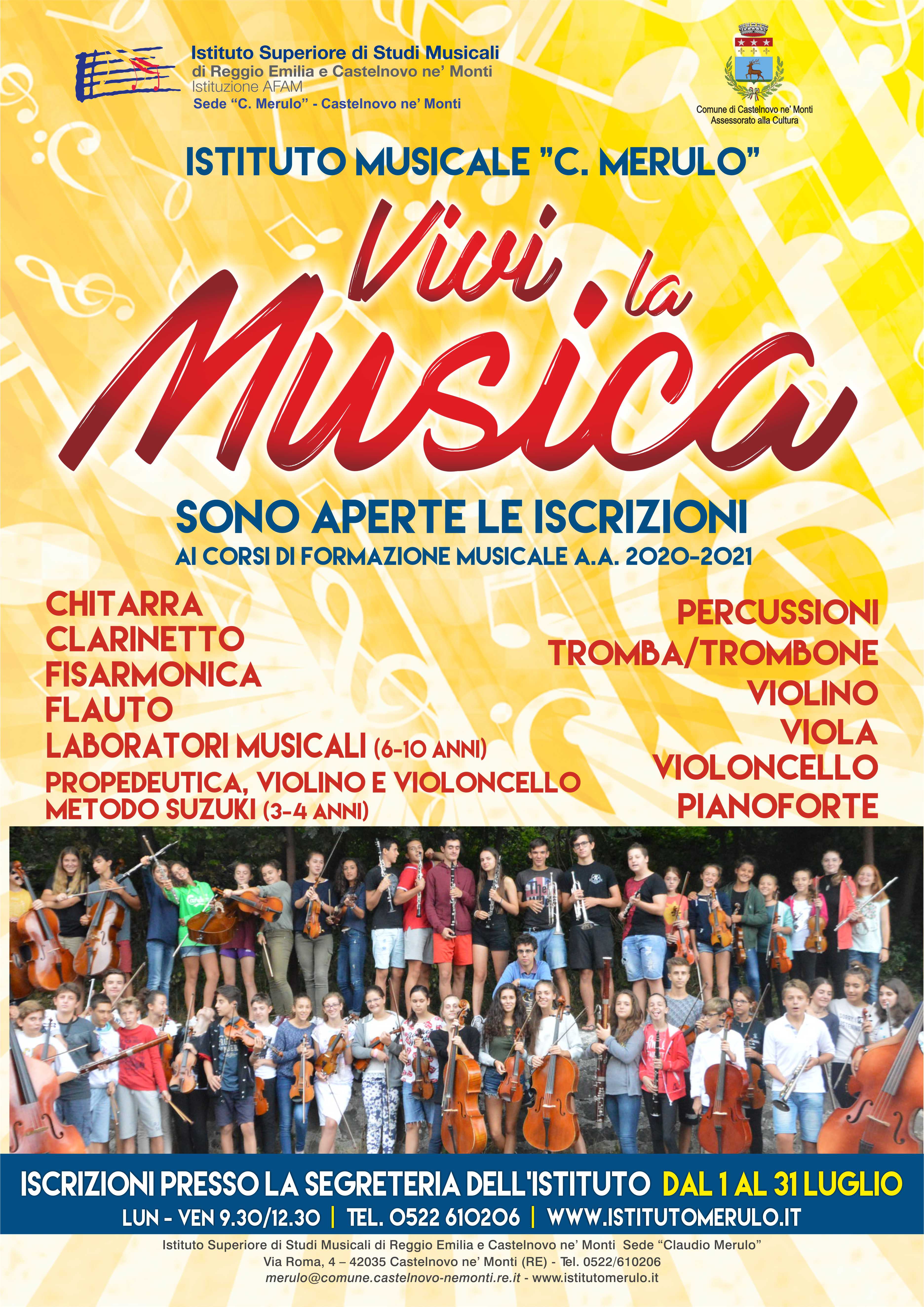 Da mercoledì 1 luglio l’Istituto musicale Merulo di Castelnovo riapre le lezioni in presenza e avvia le iscrizioni ai corsi musicali: sono previsti anche incentivi e sostegni per le famiglie in difficoltà grazie a riduzione delle tariffe, fondo di sostegno e rateizzazione del pagamento.
