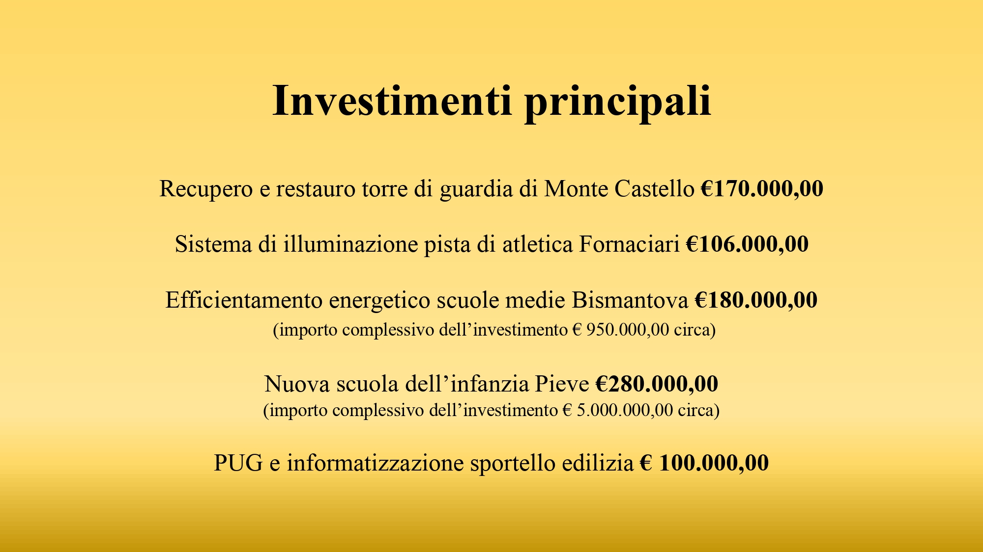Ci fa piacere peraltro essere riusciti a condurre un intervento così rilevante a sostegno delle imprese mantenendo inalterato l’impegno su altre voci di bilancio, come gli eventi culturali e di promozione del territorio: cito il cartellone Io esco Fuori che ha offerto eventi tra letteratura, musica e teatro nel mese di luglio, la manifestazione L’Uomo che Cammina in corso in questi giorni, e gli appuntamenti dedicati alla filosofia Cittaslow che proseguiranno in agosto, in collaborazione con il Parco Tegge.