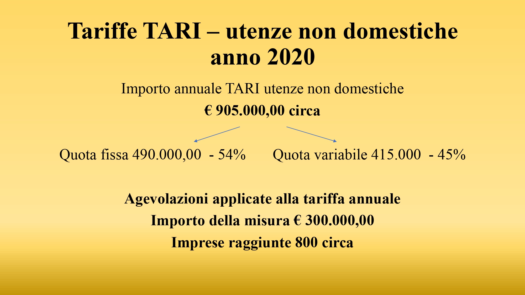 Riguarda solo le utenze non domestiche per dare un sostegno all’economia del territorio. La tariffa rifiuti è composta da due voci: una quota fissa e una variabile. Noi siamo intervenuti su quest’ultima, che nel complesso per le imprese locali ha un peso di circa 415.000 euro, quasi il 50% del totale. Il nostro intervento la riduce di circa 300.000 euro. Abbiamo stabilito questo intervento anche in seguito a una delibera di Arera (Autorità nazionale di Regolazione per Energia Reti e Ambiente) che impone uno sconto di circa il 25% della quota variabile: se l’avessimo seguita alla lettera avremmo speso 30.000 euro, abbiamo scelto di investire 10 volte di più. Le categorie che usufruiscono di sconti sono divise in due insiemi: autorimesse, magazzini, studi privati, uffici agenzie, che avranno uno sconto del 50% sulla quota variabile (quindi circa una riduzione del 25% sulla bolletta annua complessiva). Le altre categorie come vendita beni non alimentari, banchi di mercato, parrucchieri, estetisti, falegnami, idraulici, fabbri, carrozzerie, autofficine, elettrauto, artigiani, ristoranti, pizzerie, bar, caffè, pasticcerie, espositori e autosaloni, alberghi e molte altre imprese, c’è uno sconto del 100% della quota variabile, quindi uno sconto complessivo sulla bolletta annua che arriva al 50% circa. Si tratta di un’azione estremamente importante che si va ad aggiungere a una serie di agevolazioni introdotte in questa prima parte dell’anno, per rispondere all’emergenza Covid ma non solo: dalla sospensione di tutte le tariffe comunali, l’abbattimento delle rette per il nido e della scuola materna comunale fino al 30% per i redditi da 6.200 a 26.000 euro; la gestione dei Buoni spesa ricevuti dallo Stato; l’utilizzo dei 20.000 euro donati dal Comune di Illingen, che ancora una volta ringraziamo, destinati a situazioni emergenziali con il pagamento di utenze per le famiglie che erano state più duramente colpite sotto il punto di vista economico dalla pandemia.