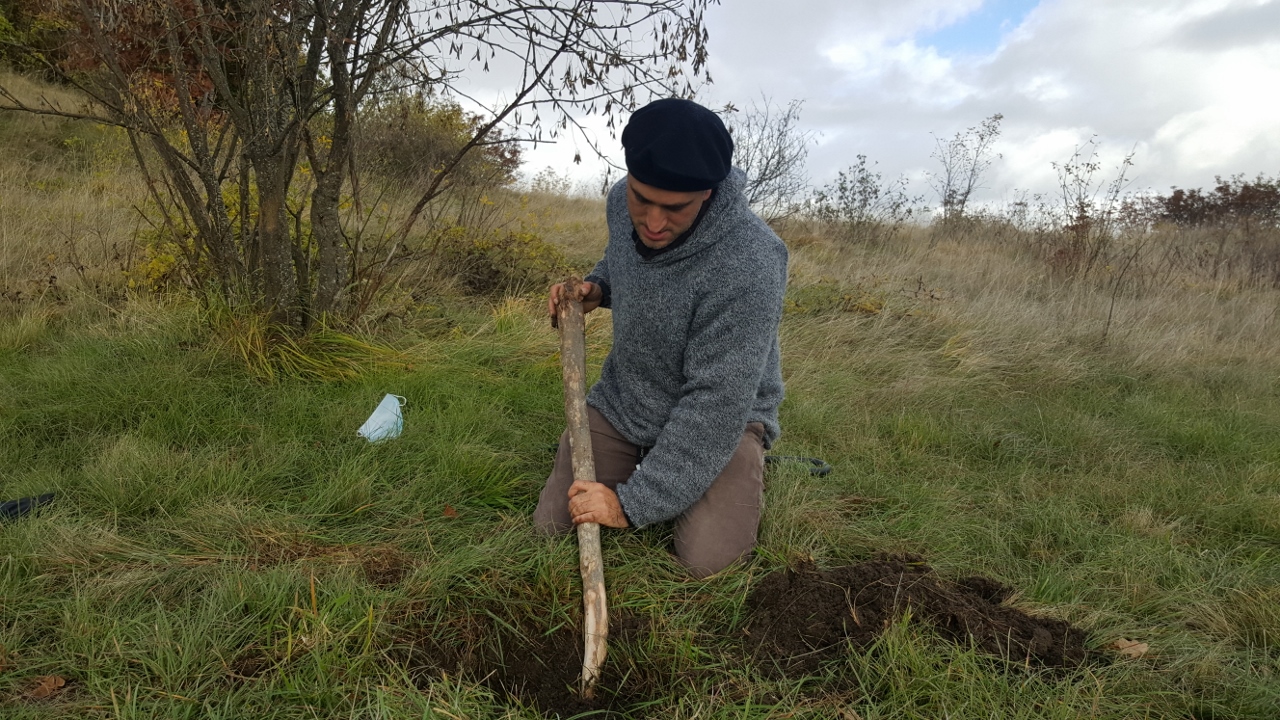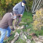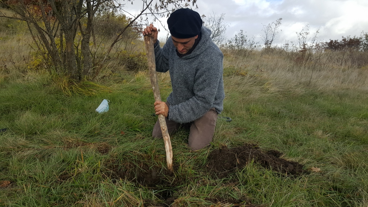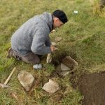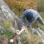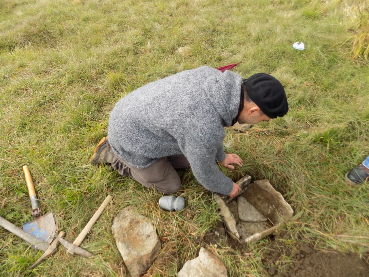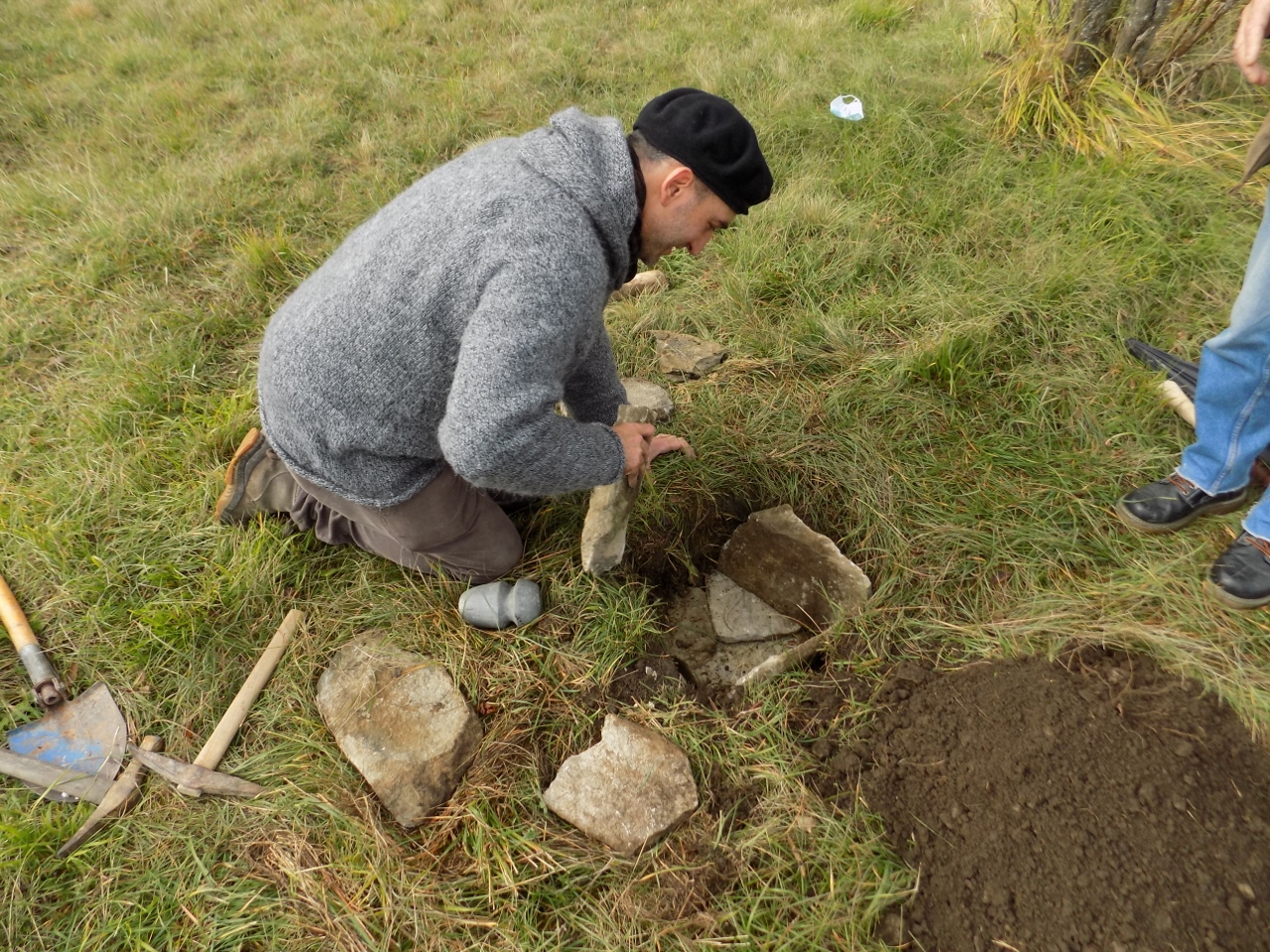 Una sfida piuttosto intensa è invece quella che sta affrontando lo scultore Dario Tazzioli, per la realizzazione delle cassette litiche utilizzando esclusivamente strumenti disponibili nell’Età del Bronzo. Tazzioli, residente a Frassinoro dove ha lo studio, è conosciuto a livello internazionale per la sua scelta di realizzare sculture che si rifanno alla tradizione rinascimentale utilizzando gli strumenti di quel periodo, ma qui ovviamente il contesto sarà completamente diverso: “Sicuramente utilizzare strumenti che non sono di ferro come utilizzavano i romani, nel medioevo e nel Rinascimento, ma solo strumenti litici e in bronzo, è completamente diverso. Ho realizzato gli strumenti basandomi sulle ricostruzioni degli archeologi, ad esempio un mazzuolo con manico in legno e testa di selce molto dura, fissata al manico con cordame di pelle, e un altro di diorite, senza manico. Sempre tramite gli archeologi cerco di ricostruire le modalità di lavoro per realizzare le lastre di pietra sbozzata necessarie per assemblare le sepolture. Per l’estrazione delle pietre da lavorare, qui vicino all’area di Campo Pianelli, utilizzo delle semplici leve lignee. Ci vuole un impegno consistente, anche a livello fisico, ma questo modo di lavorare mi permette di affrontare le stesse difficoltà e capire come operavano questi nostri avi”.