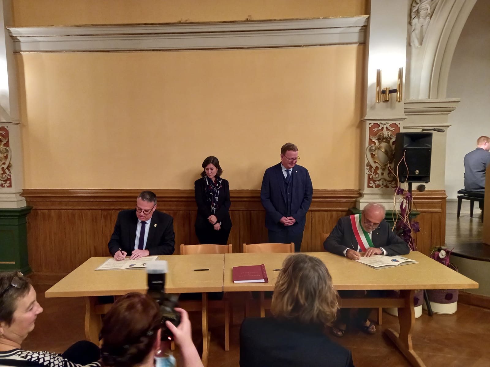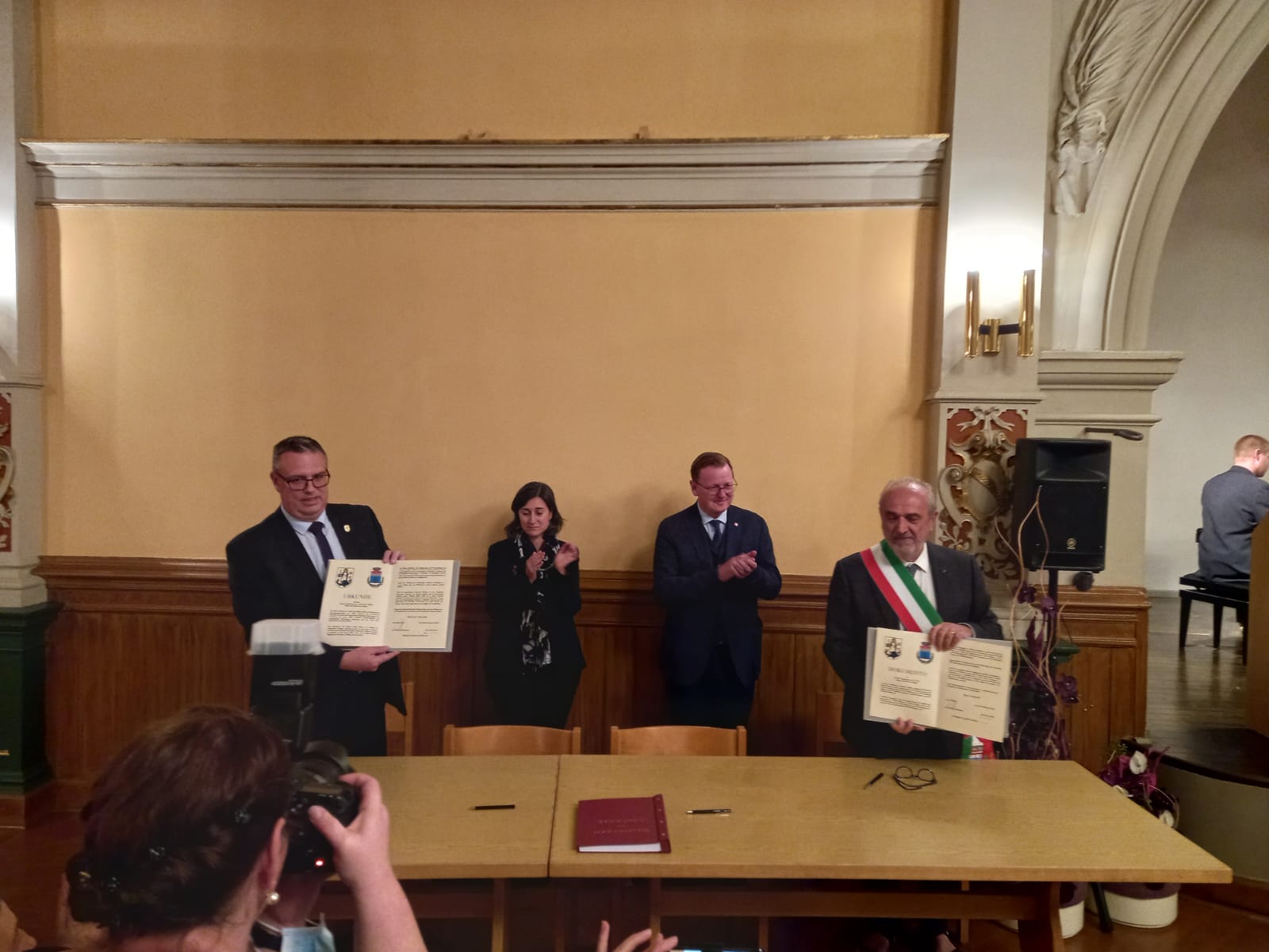 In occasione della firma del gemellaggio arriverà a Castelnovo da Kahla una delegazione di circa 40 rappresentanti della municipalità, di diverse associazioni storiche e culturali, studenti con la loro insegnante della Regelschule e Vigili del fuoco. Ma ci saranno anche le delegazioni degli altri Comuni gemellati con Castelnovo: Voreppe (FRA) e Illingen (GER), con i rispettivi Sindaci. Alla cerimonia ufficiale con la firma del patto, sarà presente anche il Presidente della Regione Emilia-Romagna Stefano Bonaccini.