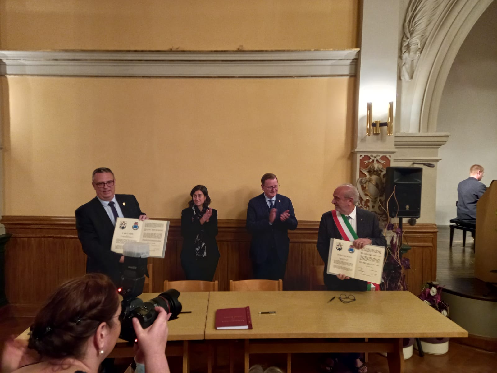 “Il 25 aprile quest’anno assomma una serie di significati che vanno anche oltre il valore, già di per se altissimo, che questa ricorrenza ha da sempre rappresentato. Perchè arriva in un momento in cui la storia dell’Europa è stata scossa da un nuovo conflitto, imprevedibile e incomprensibile, che ci fa capire quanto quei valori portati dalla Liberazione e dalla fine della seconda guerra mondiale non debbano essere dati per scontati, ma difesi ogni giorno. Ma ci sono anche motivi di speranza: il primo è proprio la sottoscrizione del patto di gemellaggio con Kahla”. Così l’Assessore ai Gemellaggi e ai Progetti europei, Lucia Manfredi, sottolinea l’importanza del momento che la comunità di Castelnovo e dell’Appennino si appresta a vivere. Il 25 aprile infatti, con la seconda firma del patto di gemellaggio a Castelnovo (la prima avvenne in Turingia lo scorso ottobre) arriva a compimento il percorso di amicizia europea con la cittadina di Kahla. “A legarci – prosegue Lucia Manfredi – sono stati proprio fatti nati dalla tragedia della seconda guerra mondiale. La deportazione di tanti montanari, diversi castelnovesi, nel campo di lavoro sotterraneo dove si producevano aerei da caccia. Tra loro alcuni purtroppo non fecero più ritorno: Inello Bezzi, Roberto Carlini, Anselmo e Renato Guidi, Pierino Ruffini, Ermete Zuccolini, Francesco Toschi. Ma da quella tragedia è poi nato, un piccolo passo dopo l’altro, un percorso di avvicinamento e condivisione, che negli ultimi anni è stato sostenuto da tanti viaggi di scambio e collaborazioni”. Aggiunge il Sindaco Enrico Bini: “Ora Castelnovo e Kahla celebrano questa nuova amicizia con un patto che ci offre nuovi spazi di incontro, rivolti soprattutto ai nostri giovani. È davvero bello che questo passaggio storico avvenga in occasione della Festa della Liberazione. Una festa che significa fraternità tra i popoli, anelito di pace e democrazia”.