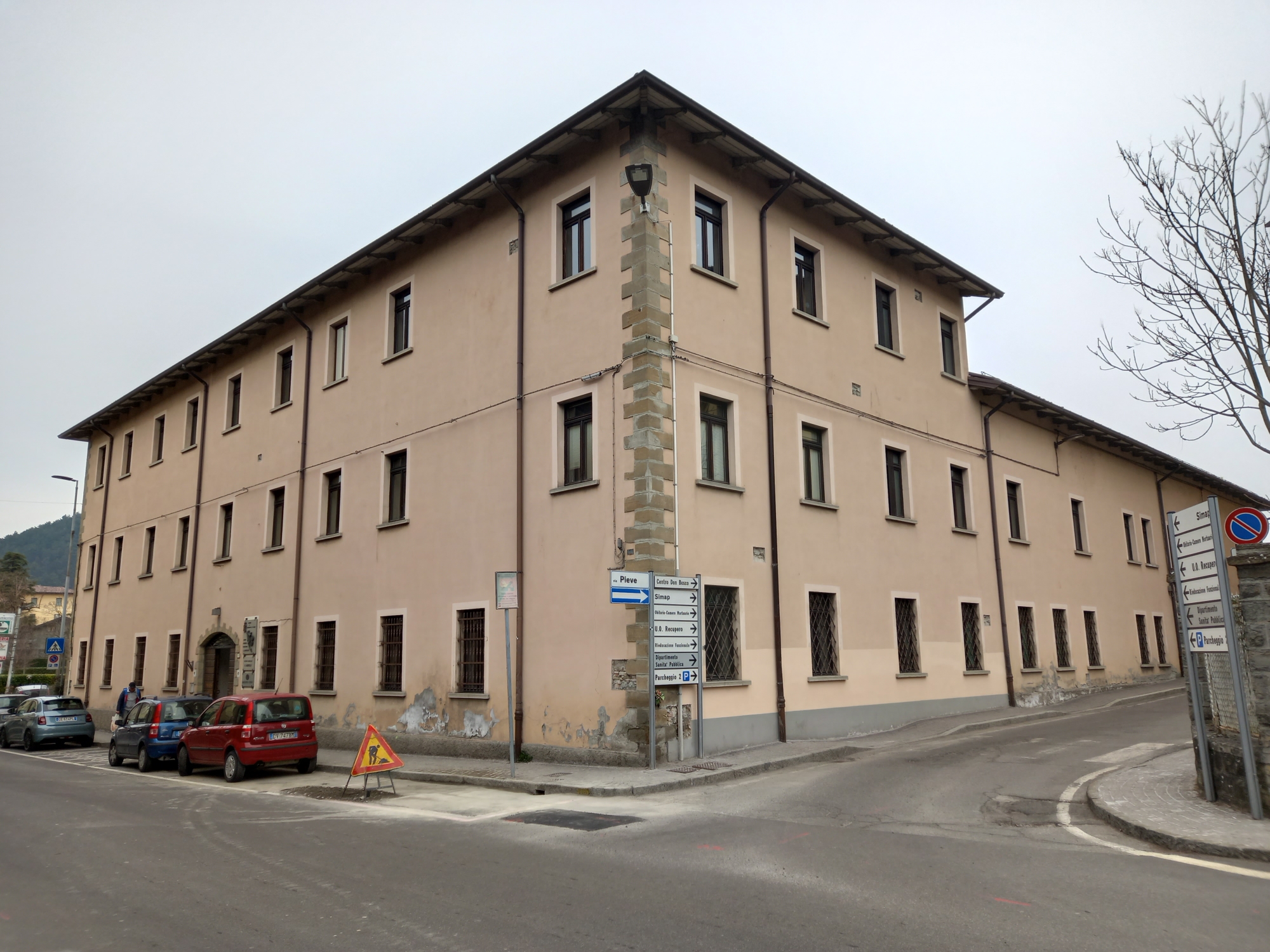 Nato come educantato femminile, si configura come un complesso “a corte” a due piani con un partito architettonico regolare di finestre sulla corte e sui prospetti esterni, che punteggiavano lunghi corridoi di distribuzione verso stanze e aule didattiche.