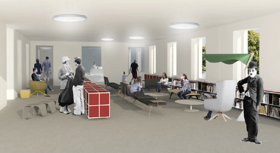 La nuova biblioteca sarà prevalentemente al primo piano ma la prerogativa principale delle nuove Officine della Creatività sarà la flessibilità determinata dalle mutevoli esigenze del servizio, con la possibilità di ricalibrare gli spazi con estrema semplicità da un piano all’altro e tra i piani. Il raddoppio della superficie della biblioteca permetterà di alleggerire la densità del patrimonio “a scaffale aperto” restituendo spazi più ariosi.