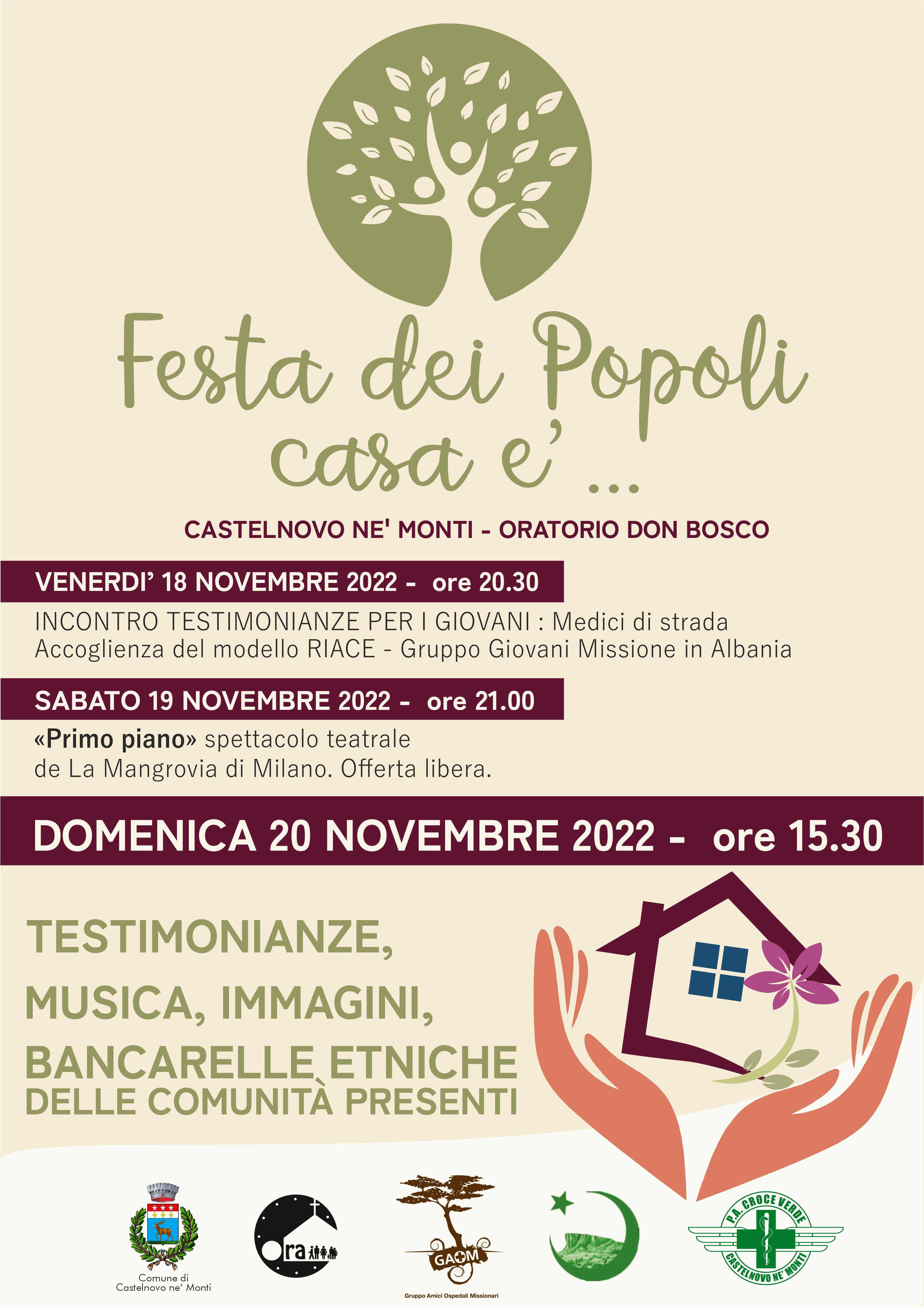 “La Festa dei Popoli vuole proprio celebrare la pluralità di voci e di sensibilità diverse che oggi abitano la montagna – afferma Alberto Campari, tra gli organizzatori dell’evento – ed evidenziare che esse rappresentano una grande ricchezza. La ricchezza dell’incontro con il mondo, della cultura e della conoscenza reciproca. Il tema della festa quest’anno è “Casa è…”: il significato vorremmo scoprirlo ed elaborarlo attraverso le testimonianze che ascolteremo. Però l’idea è che casa è il luogo dove qualcuno ti accoglie, in ogni parte del mondo, un luogo dove non sei solo. Può essere ovunque si crei una relazione con le persone, dove c’è una comunità ospitale. La festa è un evento che unisce nell’organizzazione molte associazioni del territorio che ringraziamo sentitamente”. Infatti l’evento ha il patrocinio del Comune di Castelnovo ne’ Monti, ed è proposta dall’Oratorio Don Bosco, il Gaom (Gruppo Amici Ospedali Missionari), l’Associazione culturale Al Bayt, la Croce Verde di Castelnovo Monti e Vetto.