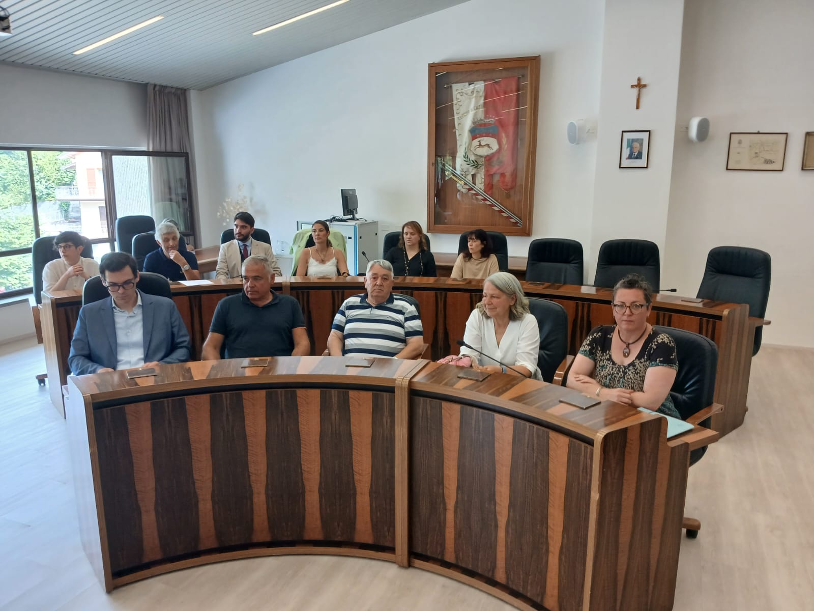 Ferrari ha poi comunicato la nuova giunta: il Sindaco ha mantenuto le deleghe ad affari generali, sanità, scuola, commercio e turismo, comunicazione, giovani, associazionismo e volontariato; Daniele Valentini è ViceSindaco e assessore a bilancio, urbanistica, pianificazione delle opere pubbliche, agricoltura, attività produttive, città slow, protezione civile; Silvia Dallaporta ha le deleghe a personale, formazione professionale e lavoro, welfare – servizi sociali, promozione del territorio e sostenibilità, semplificazione amministrativa, pace e diritti; Giorgio Severi è assessore a manutenzione e patrimonio, ambiente, frazioni; Carlo Boni assessore allo sport, mobilità, edilizia privata, digitalizzazione; Erica Spadaccini assessore alla cultura, gemellaggi, pari opportunità e politiche di genere, partecipazione. Il Sindaco ha poi individuato alcuni consiglieri ai quali attribuire alcune deleghe che lavoreranno in stretta collaborazione con i rispettivi assessori: Gianni Leurini a sport e manutenzione; Lucia Manfredi a gemellaggi e città slow; Thomas Predieri a cultura, pace e diritti; Tiziana Lanzi a scuola, associazionismo e volontariato; Patrizia Agnesini a commercio e turismo. Capigruppo sono stati designati per la maggioranza Lucia Manfredi e per la minoranza Ermanno Briglia.