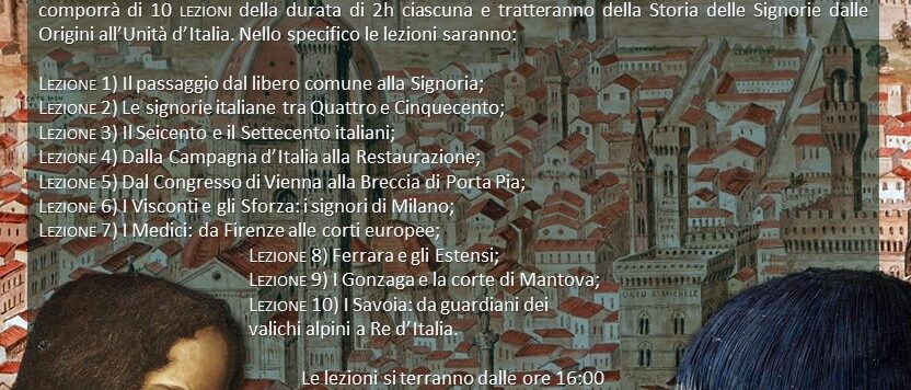 La cultura non si ferma ed anzi offre nuove opportunità e proposte che possano essere colte anche da casa. Da giovedì prossimo, 23 aprile, inizierà un nuovo evento: Thomas Predieri, studioso di storia e componente della Commissione comunale Scuola-Cultura, terrà un corso di Storia delle Signorie Italiane. Ogni lezione sarà della durata di 2 ore,…
